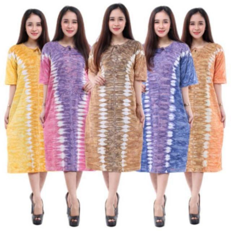 Daster Manohara Motif / Daster Manohara Tie Dye / Daster Batik - Daster Panjang Selutut Busui Kekinian