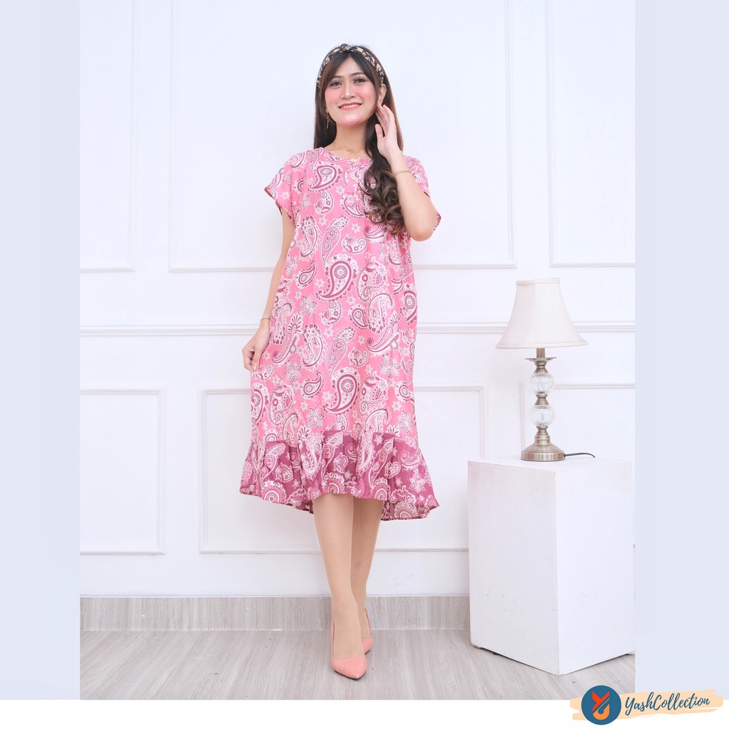 Harga YashCollection Daster Viral Ruffle Busui Bahan Rayon Motif Kekinian Fit XL