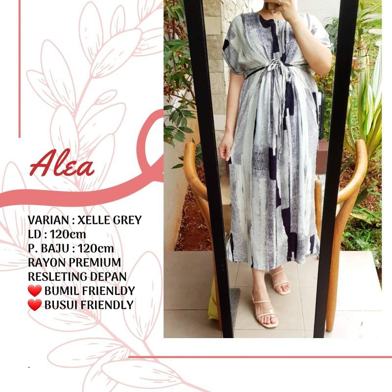 produk 2 Alea 120cm daster rayon jumbo bumil busui friendly adem resleting depan semata kaki
